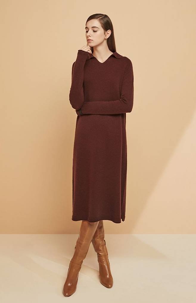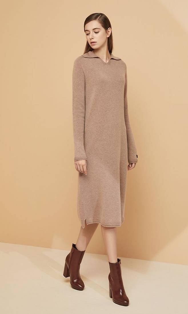 「LBL」의 캐시미어 울 블랜디드 카라 홀가먼트 원피스는 천연소재인 캐시미어와 울을 최적의 배합으로 적용해 더욱더 부드럽고 포근한 착용감을 선사한다.