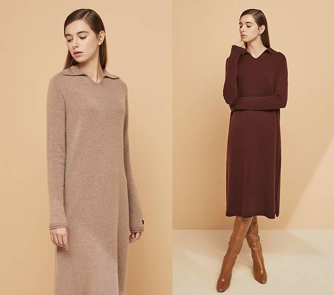 가격은 14만9천원이며, 블랙, 챠콜그레이, 와인브라운, 애쉬핑크 4종으로 구성돼 취향에 따라 선택할 수 있다. 가을 시즌 단품으로 편안한 니트 원피스룩을 연출하거나 겨울 코트 안에 매치해 포근한 니트 원피스 룩을 연출해보자.