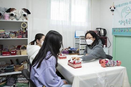 A : 공방을 운영하며 유기견 봉사도 함께하고 있어요. 갈 곳 없는 강아지를 돌보며 공존하는 삶에 대해 고민하다 보니 자연스럽게 환경에 대한 관심이 생기더군요. 단순히 공예품을 만드는 행위를 넘어 환경보호에 도움이 되고 싶다는 생각을 했죠. 그러던 중 우연히 양말목 공예를 접하게 됐는데, ‘이거다’ 싶었어요. 여러분이 신는 양말의 목 부분을 살펴보면 박음질이 돼 있죠. 박음질 된 선의 울퉁불퉁한 윗부분은 잘려나가 산업폐기물로 배출됩니다. 양말 한 켤레 당 2개의 양말목이 쓰레기로 버려지니 그 양이 어마어마했죠. 양말목 공예가 생겨나면서 이 쓰레기를 공예품으로 업사이클링할 수 있게 된 겁니다. 이렇게 쌓여 있는 양말목이 그대로 산업폐기물로 버려졌을 거라 상상해보면 양말목 공예를 시작하기 잘했다는 생각이 들어요.