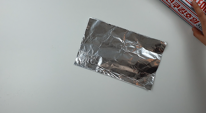 자 먼저 쿠킹호일입니다. 쿠킹호일을 뜯어 반을 접어주세요. 그냥 사용하기보다 반을 접어 사용하면 다루기가 더욱 쉬워요~ 이제 모서리부터 꼬깔 모양으로 말아주시면 돼요. 딱 두 단계만으로 일회용 깔때기가 완성됐어요. (•ө•)♡