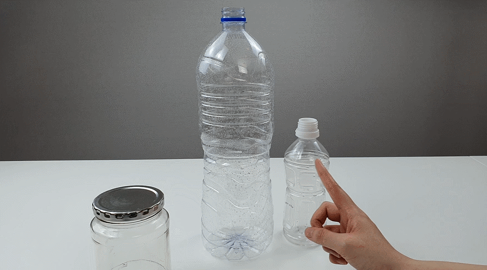 병 입구가 넓은 통에도 물론 일회용 깔때기를 사용할 수 있어요. 다만 이때는 다른 소재를 선택하는 게 좋아요. 바로 더 단단한 소재의 페트병인데요! 흐물거릴 수 있는 쿠킹호일 보다 더욱 편리해요. 우선 옮겨 담을 병에 맞는 페트병을 선택해주세요.