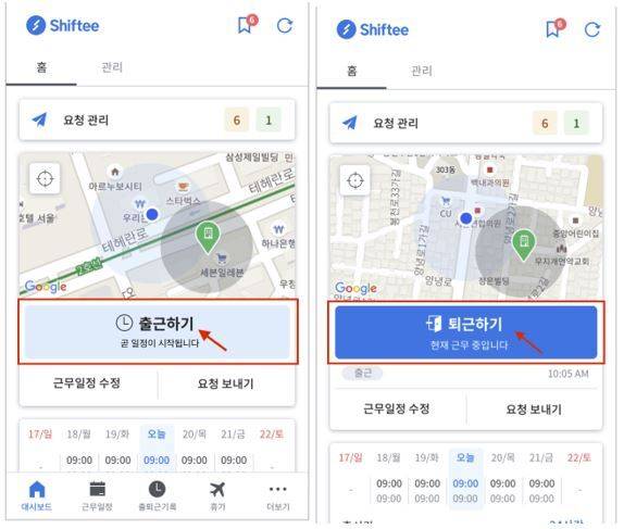 또한, 자주 오해를 낳는 게, 직출-직퇴, 근무지 외의 미팅장소 등에서 출퇴근하는 것이다. 이 역시 시프티는 위치 인증을 통해 해결한다. 미리 이 곳에서 근무를 시작하겠다, 또는 퇴근하겠다고 남긴 후, 관리자가 승인하면 끝이다.