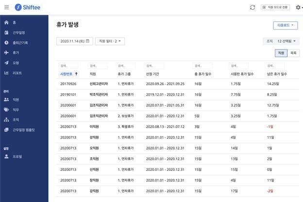 시프티를 쓰면 이런 문제는 사라진다. 입사일만 입력하면 연차 일수가 자동으로 생성된다. 또 모바일 앱을 통해, 클릭 몇 번으로 휴가 신청과 승인이 가능하다. 눈치 볼 필요도, 연차 계산이 잘못 됐다고 언성 높일 필요도 없다.