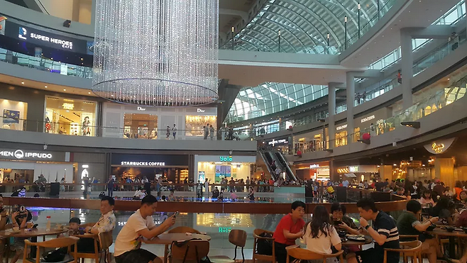 에스컬레이터를 타고 내려오면 쇼핑몰이다 다시 한층을 더 내려가면 푸드코트가 있다