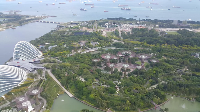 가든스 바이 더 베이의 상징! 슈퍼트리 12그루가 모여 장관을 이루는 곳 (인피니티 전망대에서 바라본 가든스 바이더 베이 전경)