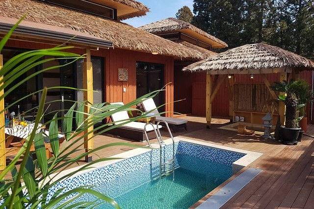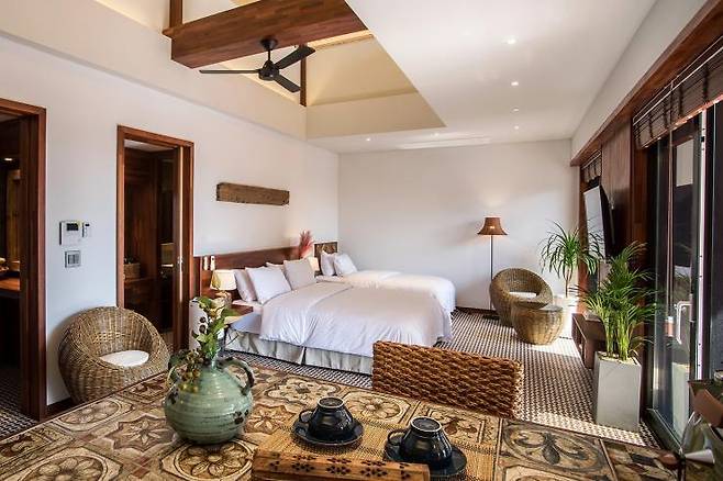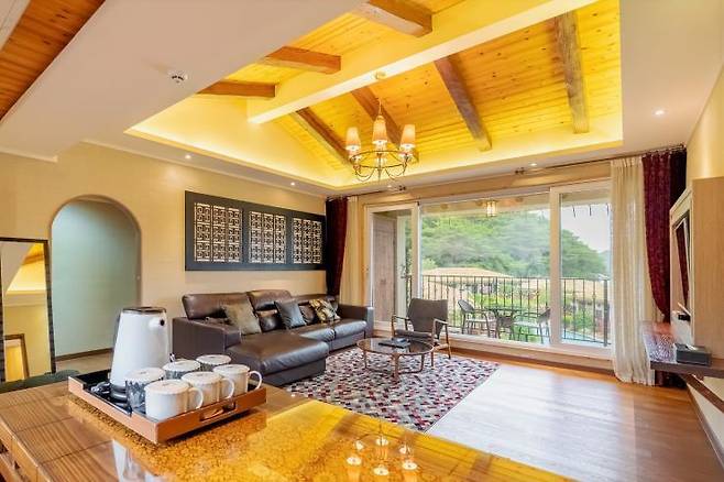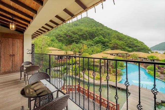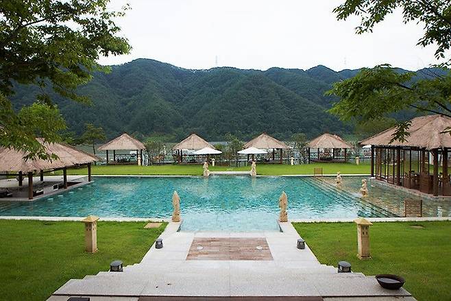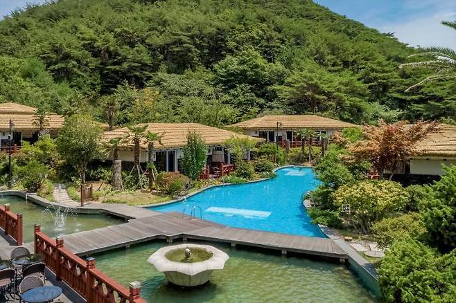 워낙 유명한 한산 마리나호텔앤리조트는 국내 발리풍 숙소의 트렌드를 이끌고 있다고 해도 과언이 아니다. 독특한 초가지붕에 야자수, 요트 선착장까지 한곳에 모여있는데 전혀 어색함이 느껴지지 않는다. 수려한 산을 배경으로 리조트를 가로지르는 청량한 수영장까지 발로 찍어도 멋진 사진을 남길 수 있을 것. 가장 궁금증을 자아내는 야외 수영장은 일부 객실에서 바로 이어지기 때문에 수영장을 목적으로 갈 계획이라면 예약 전 문의하는 게 좋다. 객실은 2인 전용부터 최대 8인까지 이용할 수 있는 스위트룸을 갖췄고, 스위트룸의 경우 노천탕을 보유하고 있다.