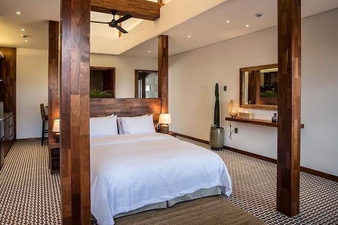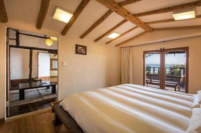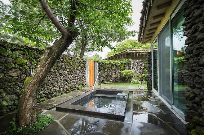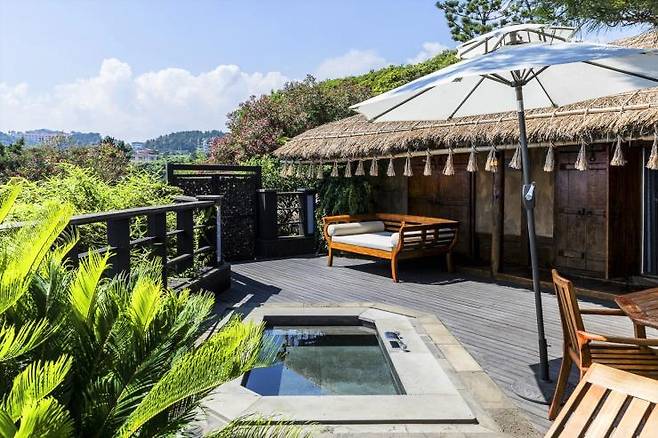 중문천이 흘러 내려오는 서귀포 바다 앞 호텔이다. 씨에스호텔앤리조트에서는 프라이빗한 야외 스파를 보유한 스위트 객실을 추천한다. 온돌을 가진 전통 한실과 모던하고 럭셔리함을 갖춘 룸을 선택할 수 있다. 특히 전통 한실의 경우 동남아 분위기와 한옥을 적절히 접목한 인테리어가 독보적이다. 객실에 딸린 전용 테라스는 바다가 보이는 뷰까지 갖췄다. 여기에 아늑함을 더해줄 제주도식 초가지붕, 다른 이들과 마주치지 않을 별채 가든이 마련되어 있어 신혼여행에 추천하는 숙소다.