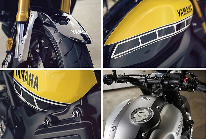 또한 기존 XSR700에서 작고 디테일한 부분이 단조롭고 색상이 맞지 않았던 단점을 이번에 소개된 XSR900에서 모두 뜯어 고쳤다. 라디에이터 및 흡기시스템, 엔진은 검은색으로 통일해 단조로움을 방지하고 깔끔한 디자인을 강조했다. 또한 헤드라이트, 테일라이트, 엔진 커버 등 외부 파츠들은 원형 디자인으로 통일해 심플하지만 멋스러운 느낌을 준다. 색상은 깔끔한 매트 그레이, 시크한 다크블루, 노란색과 검정색의 혼합 색상이 있다.