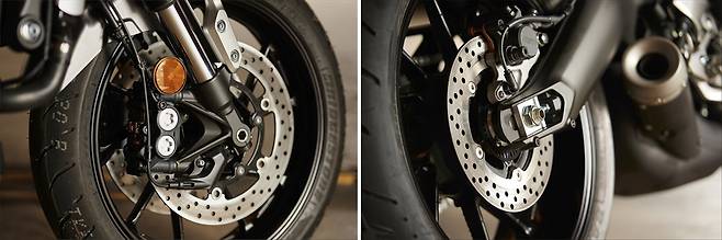 타이어 세트는 앞 타이어 120/70 17, 뒷 타이어 180/55 17이고 프론트 브레이크는 298mm 듀얼 디스크, 리어 브레이크 245mm 싱글디스크 이다. 서스펜션은 41mm 도립 포크와 싱글 리어 쇼크를 장착했다. 특히 서스펜션은 이미 설치된 것 외에 운전자의 선택에 따라 변경이 가능하다.