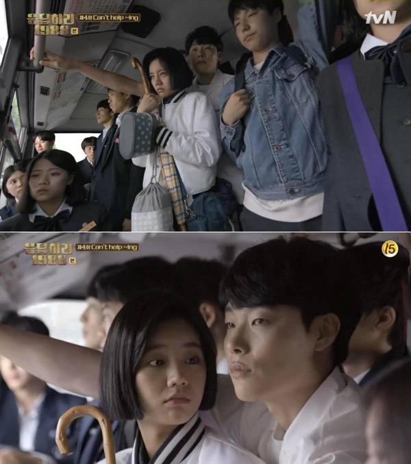 14일 tvN ‘응답하라 1988’ 4회에서는 만원버스를 타고 등교하는 덕선(혜리 분)과 정환(류준열 분)의 모습이 담겼다.