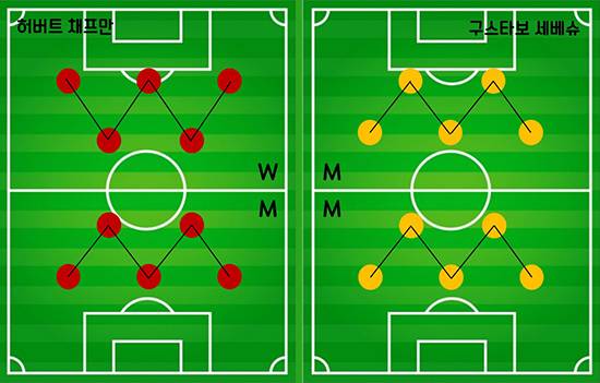 50년대 초반의 헝가리의 세베슈 감독이 사용한 MM 포메이션은 세계 축구의 한 페이지를 담당하는 전술로 평가된다. 세베슈 감독은 4~50년대 당시 단편 일률적으로 사용되던 영국식 WM 시스템에 부분적인 수정을 가하고자 했는데, 이러한 전술적 변화의 테마는 바로 ‘포지션체인지’ 였다. 이는 철저한 1:1 대인마크 체제에 기반을 두고 있던 WM 시스템의 수비진을 보다 효과적으로 공략하기 위해서였다.