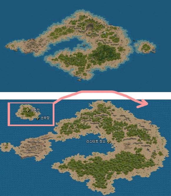 당시 이 섬에서는 캐릭터가 사망하거나 다시 시작하더라도 다시 섬의 해안가에서 재시작되기 때문에 무작위로 등장하는 텔레포터 '럭키'나 '아시리스'를 통해서만 섬 탈출이 가능했다. 랜덤 텔레포트, 귀환주문서의 사용이나 기억 및 부활마저 일체 불가능해 유저들에겐 열악한 지역으로 꼽혔다.