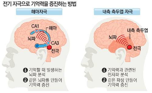 미국 펜실베이니아대 연구진은 뇌의 내측 측두엽을 자극함으로써 기억력을 향상시키는 데 성공했다고 밝혔다. 다니엘 리주토 펜실베이니아대 신경과학연구소 교수는 28명의 뇌전증 환자들에게 단어를 외우게 한 뒤 뇌에서 발생하는 전기신호의 일정한 패턴을 발견했다. 이 패턴을 기반으로 환자가 단어를 기억해 내지 못할 때 내측 측두엽을 자극했다. 내측 측두엽 안에는 기억과 연관된 해마가 있다. 연구진은 "기억력을 최대 140%까지 향상시킬 수 있었다"며 "뇌가 갖고 있는 기억에 대한 원리를 이해하지 못해도 안전성과 효능이 확인되면 치료법으로 개발할 가치가 있다"고 설명했다.