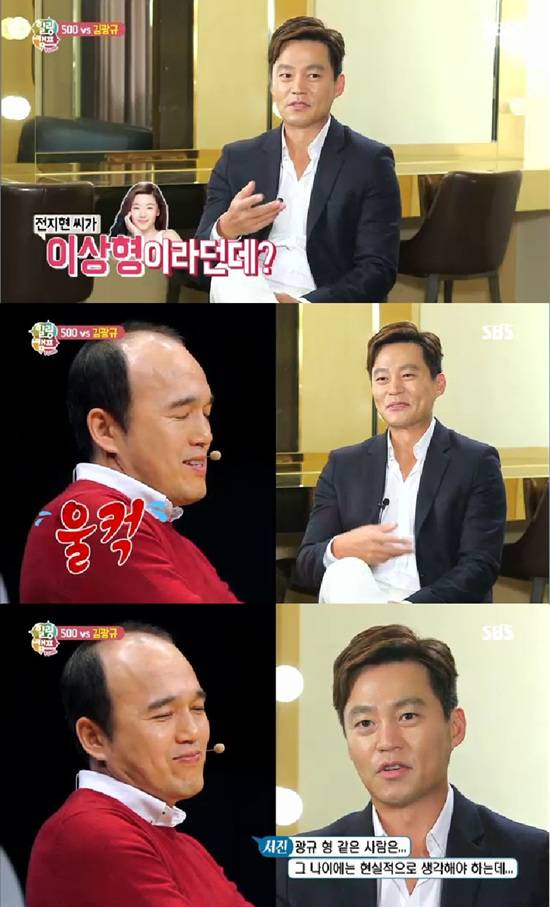 이서진은 "굉장히 눈이 높다. 외모지상주의이다. 외모를 많이 본다. 사람을 외모로 판단한다. 전지현 씨가 이상형이라고 하는데 그런 것도 말이 안 된다. 광규 형은 그 나이에는 좀 현실적으로 생각해야 하는데"라며 폭로를 해 웃음을 자아냈다.