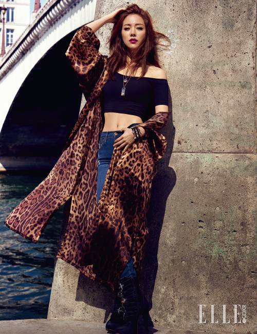 레오퍼드 가운은 Lovlov. 블랙 크롭트 톱은 American Apparel. 데님팬츠는 James jeans. 블랙, 골드 뱅글은 모두 Vita fede by Bbanzzac. 레이어드한 네크리스는 Minetani. 블랙 앵클부츠는 Shoesone.