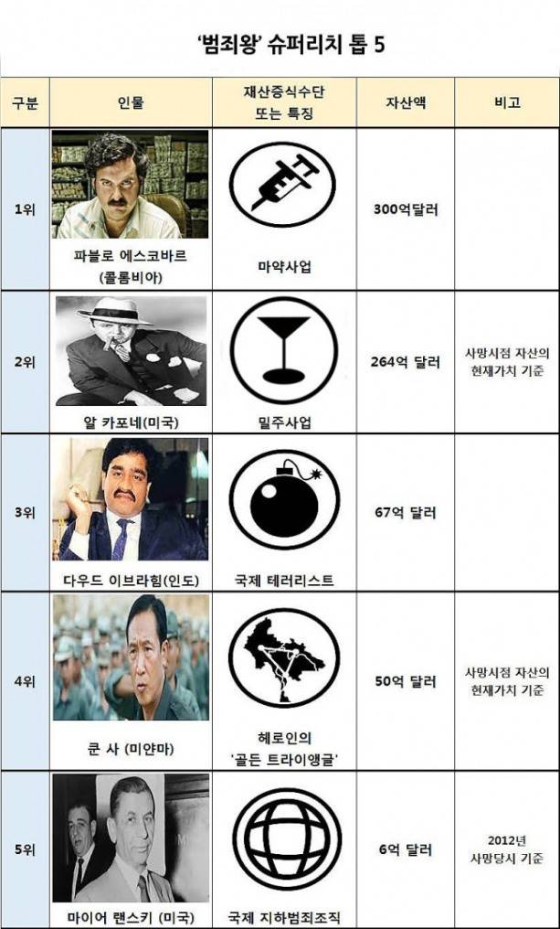 역대 가장 많은 자산을 가진 범죄형 슈퍼리치 5명을 통해 베일에 가려진 범죄갑부들의 삶을 살펴봤다.