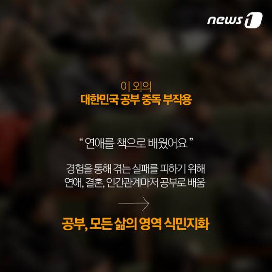(서울=뉴스1) 윤수희 기자,최진모 디자이너 = 공부가 인생의 전부는 아닐 수 있어도 성공의 대부분일 수 있다. 사회학자 엄기호와 정신의학의 하지현은 책 '공부 중독'을 통해 대한민국을 '공부 중독 사회'로 규정하고 그 원인과 부작용을 진단한다. 아울러 공부 중독의 부작용에서 벗어나는 방법을 제안한다.