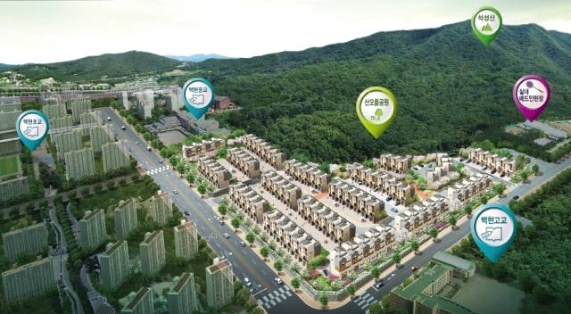 무엇보다 단지반경 300m내에 백현초등학교와 백현중학교, 백현고등학교가 위치해 있어 우수한 교육환경을 자랑하며, 사업지 남측으로는 석성산이 조망돼 수려한 자연경관을 느낄 수 있다. 산오름공원과 한들공원, 동백 호수공원 등 완벽한 녹색인프라와 생활체육시설이 근접해 있어 건강한 여가생활을 즐길 수 있을 것으로 기대를 모으고 있다.
