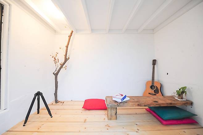 2층은 평소엔 김씨의 안방 겸 서재로 쓴다. 또 가끔 외국인 손님들에게 빌려주기도 한다. 이른바 게스트하우스다. 김씨는 “주택 매입 당시 게스트하우스를 염두에 두고 작업한 것은 아니지만 2층에 작품을 직접 전시하기 시작하면서 게스트하우스를 열게 됐다”고 말했다. 2층은 1층과 출입구가 따로따로다.