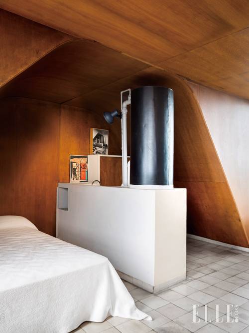 르 코르뷔지에는 침실의 회전문과 옷장을 결합시켰다. 옷장 위의 벽에는 튜브 끝에 심플한 전구를 달아 미니멀한 조명을 설치했다.