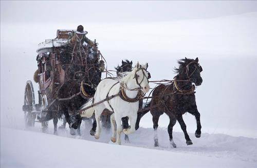 눈보라가 매섭게 치는 오후, '교수형 집행인' 존 루스(커트 러셀)와 '죄수' 데이지 도머그(제니퍼 제이슨 리)를 태운 마차를 누군가 세운다.