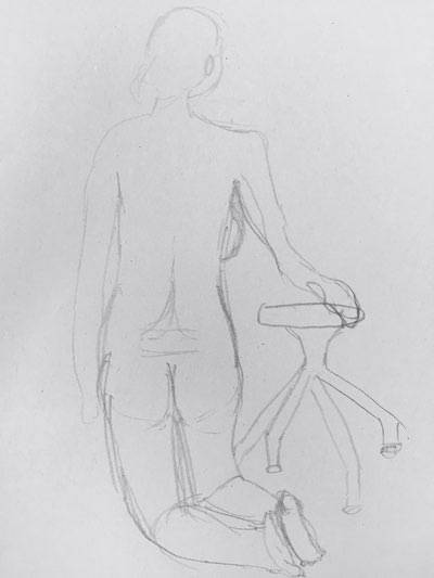 사람 몸에 있는 선이 아름답게 느껴졌다. 3분마다 바뀌는 포즈를 따라가다 보니 여자 모델을 보고 딴 생각을 할 여유도 없었다. 동시에 '어제 내가 민망해할 필요가 전혀 없었다'는 생각이 들었다. 여자 모델은 의자에 버티고 선 자세를 5분 동안 유지할 때 팔이 덜덜 떨기도 했지만, 음악의 분위기에 맞춰 포즈를 잡아 감정을 쏟아내고 있었다.