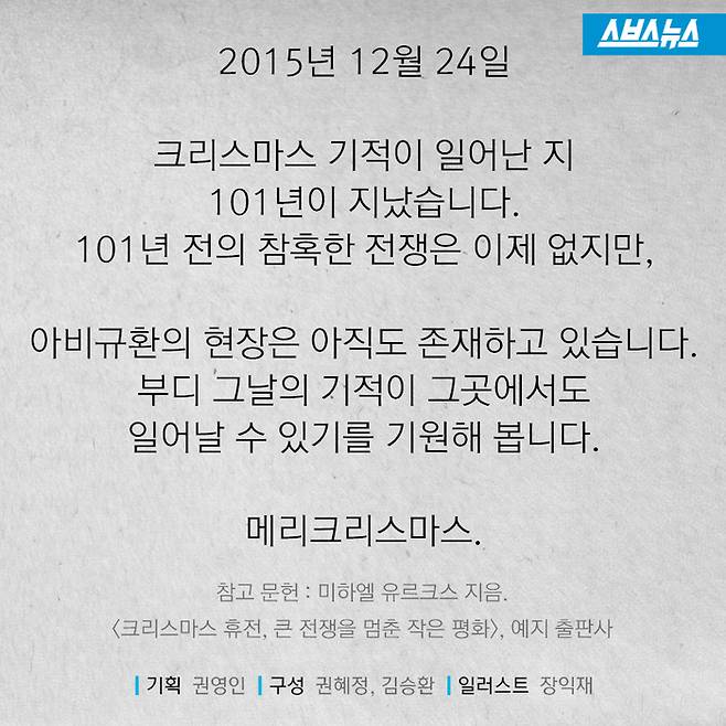 "메리 크리스마스! 우리는 쏘지 않겠다! 너희도 쏘지 마라!"