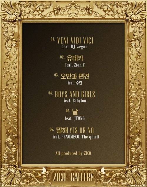 블락비 지코, '갤러리' 트랙리스트 공개.. 자이언티 참여