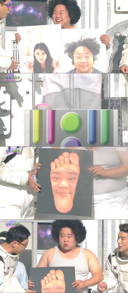 18일 방송된 KBS '개그콘서트-우주 라이크'에서는 합성 기계을 공개했다. 송영길은 "아이유와 내 사진을 합성하면 어떻게 될 지 궁금하다. 합성하면 2세 사진이 나오겠죠?"고 자신의 사진과 아이유 사진을 기계에 넣었다.