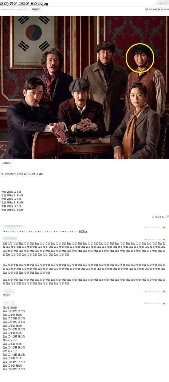 방송을 위한 고화질 이미지를 위한 것이라면 변명이 되지 않는다. 일베에 게재된 이미지의 해상도 보다 네이버와 다음에서 손쉽게 '암살'을 치면 나오는 포스터가 더욱 고용량, 고화질이다.