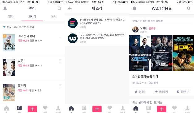 - 개인 취향 고려한 영화추천 어플 '왓챠', 새로운 버전 출시