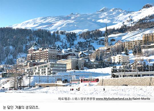 생모리츠는 전 세계 부호들과 스타들의 많은 사랑을 받아온 대표적인 스키 휴양 도시이다. 이탈리아와 가까운 알프스 산 자락 호수변에 그림처럼 자리잡고 있다. 체르마트는 마터호른 등반의 전진기지로 고산지대에 자리잡은 또 하나의 인기 휴양지이다. 이 아름다운 두 도시 사이를 빙하특급열차가 달린다. 푸른 들판과 흰 설산을 누비는 붉은 빛과 흰빛의 열차는 너무나도 스위스스럽다.