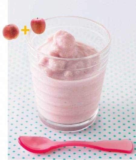 복숭아 70g, 플레인 요구르트 50ml, 사과 50g, 올리고당 1큰술, 우유 50ml, 레몬즙 1작은술