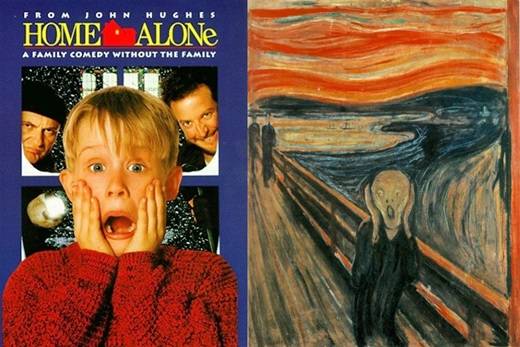 뭉크의 '절규'는 여러 장르와 작품에서 패러디됐지만, 가장 대표적인 성공 사례는 '나홀로 집에'라고 할 수 있습니다. 극 중 케빈이 아빠를 흉내 내려 면도를 하고, 스킨을 바르다 비명을 지르는 장면은 '나홀로 집에'를 대표하는 명장면이 됐습니다.