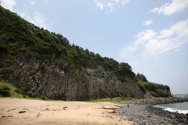 일행의 선두가 중문 해수욕장에 다다랐다. 누가 뭐라고 하지 않았는데도 모두 신발을 벗는다. 그리고는 자연스레 바닷물에 발을 담근다. 어린아이 모양 즐거운 표정이다. 고운 모래 알갱이가 발가락 사이로 삐져나오며 간지럼을 태우고, 파도는 조심스레 다가와 발을 적신다. 그야말로 최고의 걷기다. 6월의 제주는 그렇게 여름을 맞이한다.