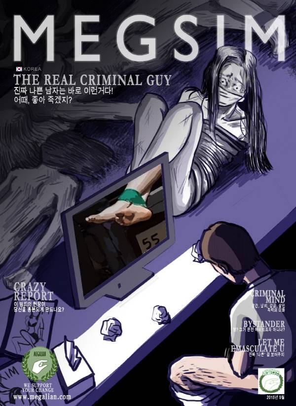 | 한 누리꾼이 지난달 26일 온라인 커뮤니티 ‘메갈리안’에 게시한 맥심코리아 9월호 표지의 패러디작품. |