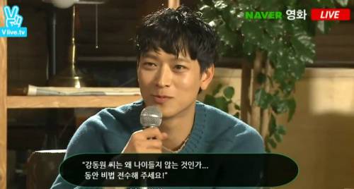 강동원은 지난 12일 열린 제작보고회에서 "나이를 너무 천천히 먹는 것 아니냐고 하는데 내 친구들 보면 지금 진짜 엉망이다"며 "내 대학교 동창 애들과 가끔 모이는데 애들 상태가 많이 안 좋아졌다. 친구들을 보면 내가 어려보이긴 하다"고 너스레를 떨었다.