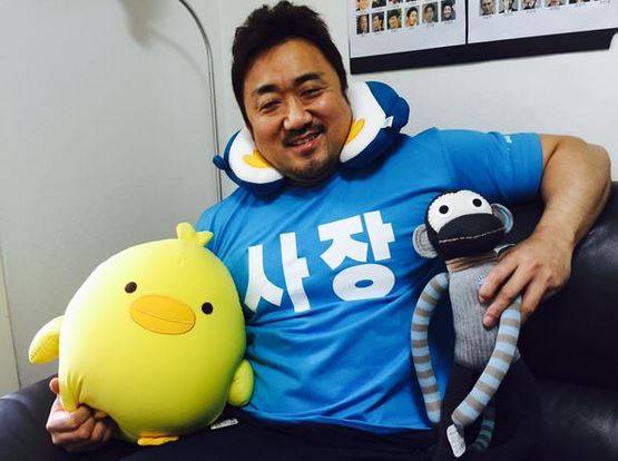 공개된 사진 속 마동석은 '사장'이라고 적힌 티셔츠와 귀여운 인형을 안고 환한 미소를 짓고 있는 모습이다. 특히 마동석은 영화 '베테랑'에서 아트박스 사장으로 카메오 출연을 해 주목을 모은 바 있다.