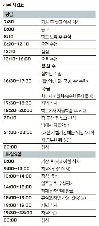 수학과 과학을 공부할 때도 마찬가지다. 교과서의 목차와 단원별 학습 목표 등을 통해 무엇을 배워야 할지 주요 흐름도를 미리 머릿속에 그려넣는다. 교과서에 나온 여러 개념이 그 흐름도 속에서 어떻게 연결되는지 끊임없이 확인한다. 정군은 “전체적인 흐름을 짚어가며 내가 지금 공부하는 게 어느 맥락에 속하는지를 끊임없이 확인하고 파악하지 않으면, 수업 시간마다 새롭게 등장하는 개념들을 왜 배우고 어디에 어떻게 적용해야 할지 모르게 된다”고 강조했다.