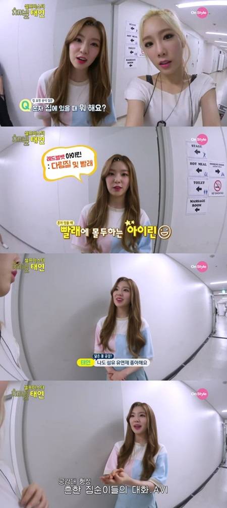 레드벨벳 아이린의 말에 태연은 격하게 공감하며 "나도 섬유유연제 같은 것들 좋아한다"고 말했다. 갑자기 공감대가 형성된 레드벨벳 아이린과 태연은 속사포로 섬유유연제 등을 이야기해 웃음을 자아냈다.