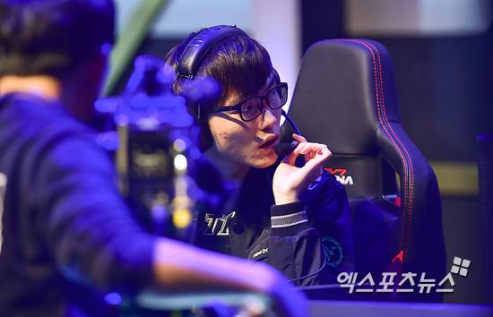 [엑스포츠뉴스=부산, 권혁재 기자] 13일 오후 부산 해운대구 벡스코 오디토리움에서 네이버가 메인 후원사로 참여하고 한국이스포츠협회가 주최하는 ’네이버 2015 LoL KeSPA Cup(이하 케스파 컵)’ 4강전 2경기 ESC Ever와 SK Telecom T1경기에서 1세트 패하며 교체 출전한 SK 페이커(Faker) 이상혁이 2세트 준비를 하고 있다.