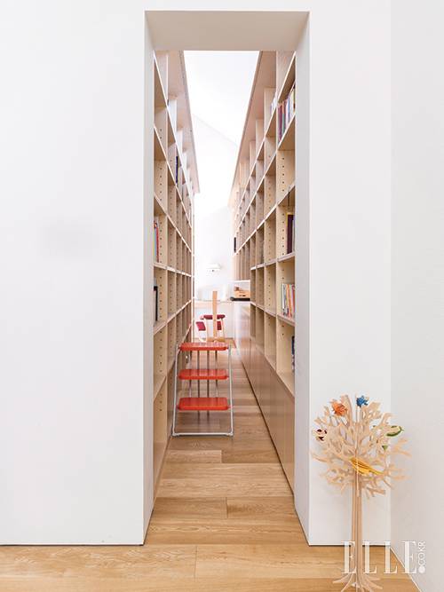 버드 트리는 핀란드 자작나무 합판으로 만든 것으로 Lovi. 레드 컬러 사다리는 안드리스 앤 히로코 반 옹크(Andries & Hiroko Van Onck)가 디자인한 ‘누오바스텝(Nuovastep)’ 모델로 Magis. 배경의 데스크 체어는 Varier.