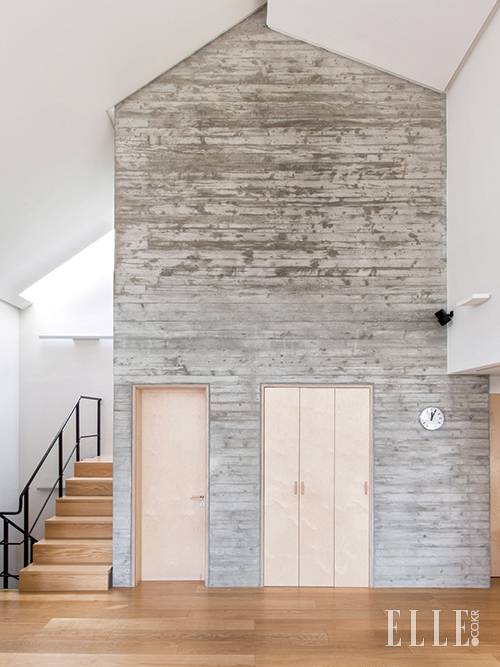 외관의 구조와 콘크리트 소재를 똑같이 실내로 불러들여 마치 하나의 커다란 판처럼 보이는 효과를 주었다.
