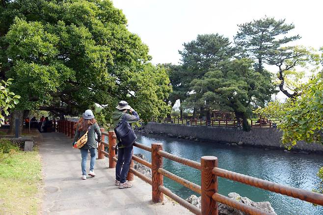 일출봉이 아스라이 보이는 남원포구에서 시작해 대한민국에서 가장 아름다운 해안 산책로로 꼽히는 큰엉 경승지 산책길을 지나 민물과 바닷물이 만나는 쇠소깍까지 이어지는 길이다. 오감을 활짝 열고 걷는 바당올레와 마을올레다. 키가 훌쩍 큰 동백나무로 울타리를 두른 마을 풍경이 멋스럽다. 남원읍과 해병대 93대대의 도움을 받아 사라지고 묻히고 끊어진 바당올레길 세 곳을 복원했다. 덕분에 난대 식물이 울창한 숲을 지나서 바다로 나가는 특별한 즐거움을 누릴 수 있게 되었다.