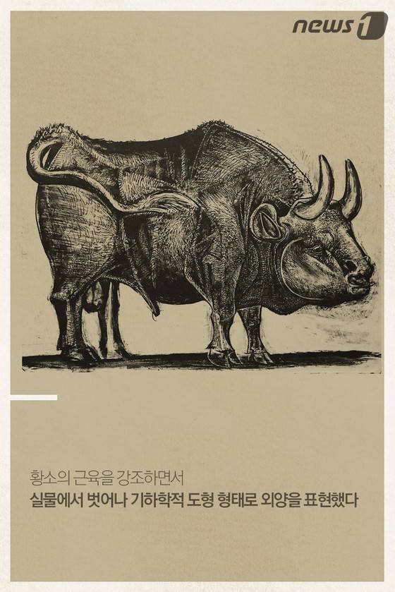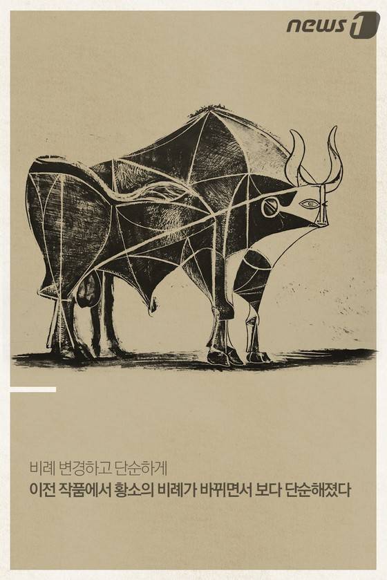 (서울=뉴스1) 박정환 기자,최진모 디자이너 = 입체파의 거장 파블로 피카소(Pablo Picasso, 1881~1973)는 몇 개의 선으로만 '황소'를 표현했다. 그는 어떤 과정을 거쳐 '황소'를 추상적으로 표현했을까. 그 해답은 서울 서초구 예술의전당 한가람미술관에서 진행중인 베네수엘라 국립미술관재단 컬렉션전 '피카소에서 프란시스 베이컨까지'에 가보면 알 수 있다. 이 전시에선 피카소의 '황소' 연작 석판화 13점을 포함해 서양 미술사에서 중요한 위치를 차지하는 거장 20명의 작품을 2016년 3월1일까지 선보인다.