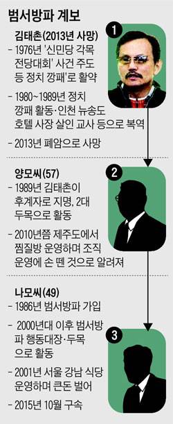 서울지방경찰청 광역수사대는 지난 17일 서울 강남에서 유명 고깃집을 운영하는 나모(49)씨를 폭력행위처벌법 위반 혐의로 구속했다. 경찰 관계자는 19일 "나씨는 2009년 강남 한복판에서 발생한 조직폭력배 간의 흉기 대치 사건에서 폭력조직 범서방파 세력을 이끈 행동대장"이라며 "범서방파를 조직한 김태촌씨의 후계자라는 혐의가 있어 수사 중"이라고 말했다.