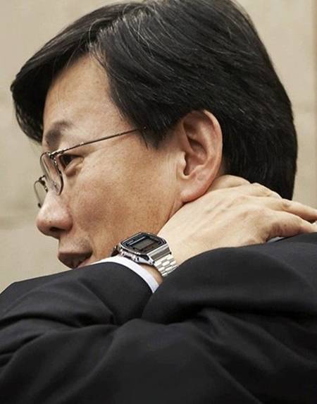 공개된 사진에는 목덜미를 잡고 있는 손석희 앵커의 모습과 함께 그가 차고 있는 손목시계가 눈에 띈다.
