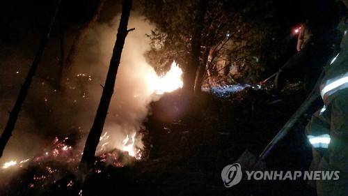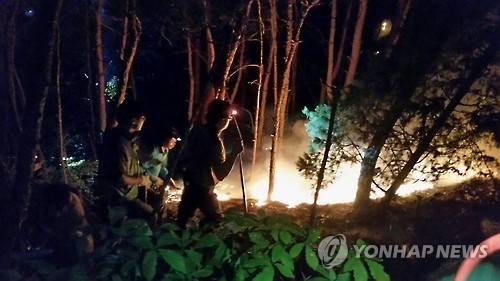 (대전=연합뉴스) 이주영 기자 = 28일 오후 5시 50분께 대전시 동구 낭월동 산내초등학교 뒤편 식장산 자락에서 불이 나 인근 야산 0.5㏊를 태우고 4시간여 만에 진화됐다.