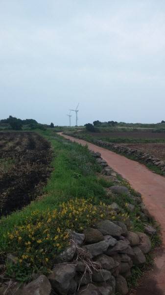 | ▲ 가파도 길, 저 멀리 풍차가 보인다 |