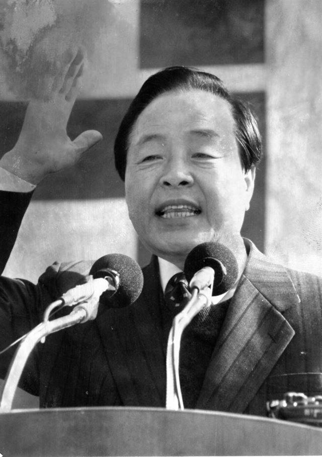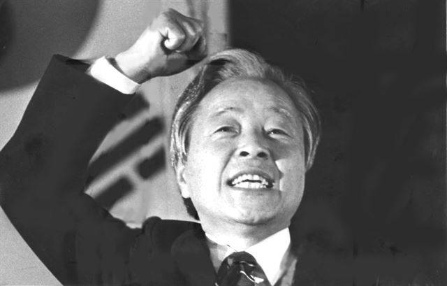 1987년 11월17일 13대 대통령서거 유세장에서 지지를 호소하며 연설하는 김영삼 민주당 후보